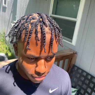 The first stage to begin your loc journey. This style embraces the curl pattern and density of the natural hair. Signature coil starter method used. Consultation, shampoo and steam treatment and moisture treatment included.